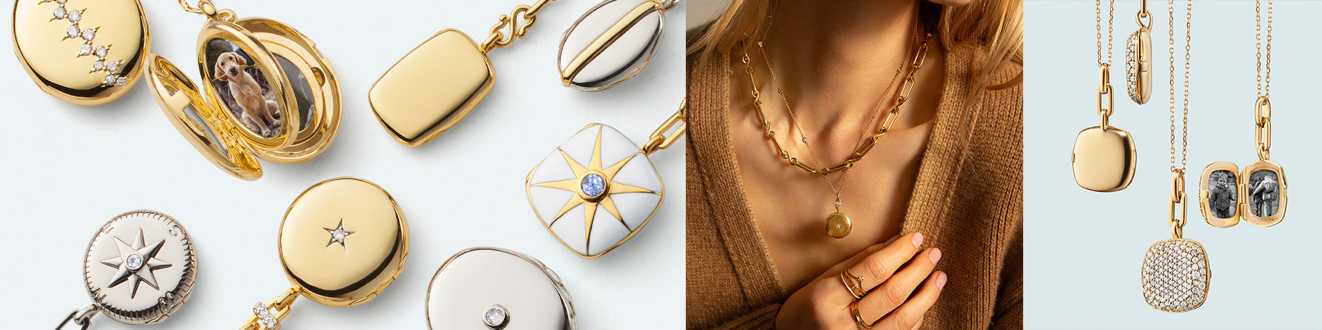 Monica Rich Kosann began her career as a portrait photographer before launching her namesake jewelry line in New York. Inspired by storytelling, family, and personal history, she reimagined vintage-inspired keepsakes like lockets, charm bracelets, and compacts into fine jewelry. Each piece is designed to empower its wearer and reflect their individual journey, combining meaningful design with timeless styles.