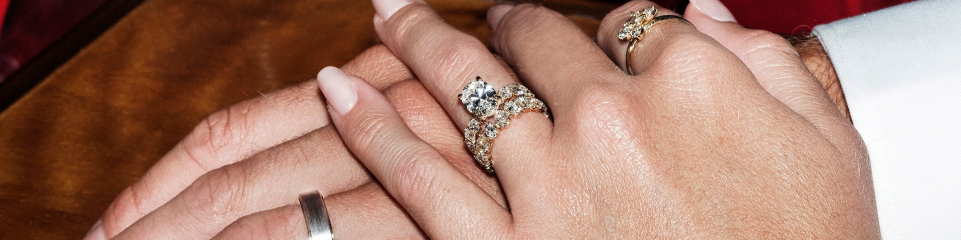 Oval Diamond Wedding Ring 18K Yellow Gold - R795SB