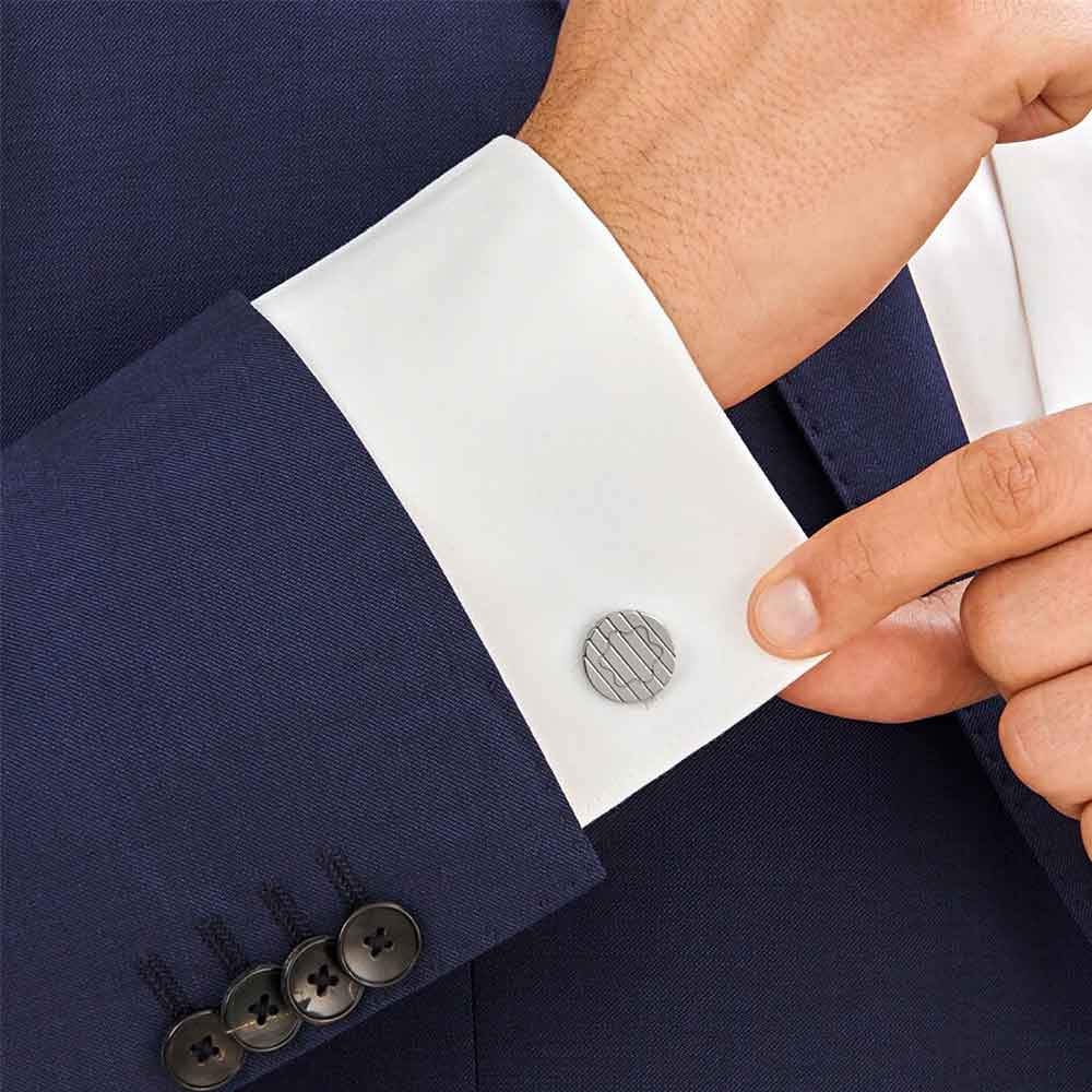 Sterling Silver Round Sky Blue Hematite Cufflinks