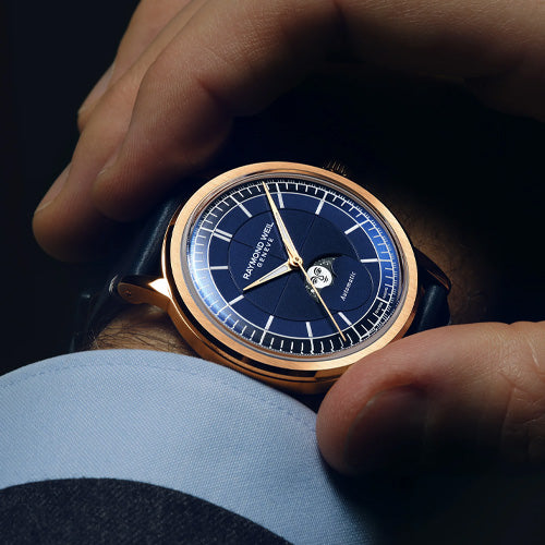 Beauty and aesthetic proportions are no coincidence. Thanks to its experience, know-how and to the mechanical precision of its watchmakers, RAYMOND WEIL is capable of transforming a design concept into a high quality watch to please its demanding clients. From conception through to the final stage of assembly, RAYMOND WEIL’s attention to quality is constant. The experienced watchmaker’s hands and eyes and his traditional tools, are highlighted by highly sophisticated technology. Each watch is minutely examined and undergoes 350 checks before receiving the RAYMOND WEIL quality label.