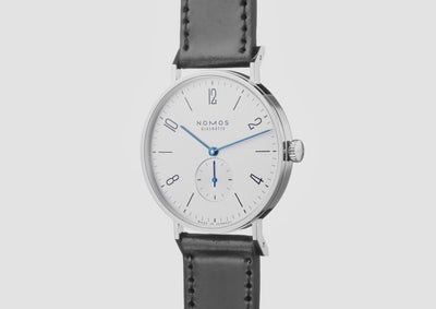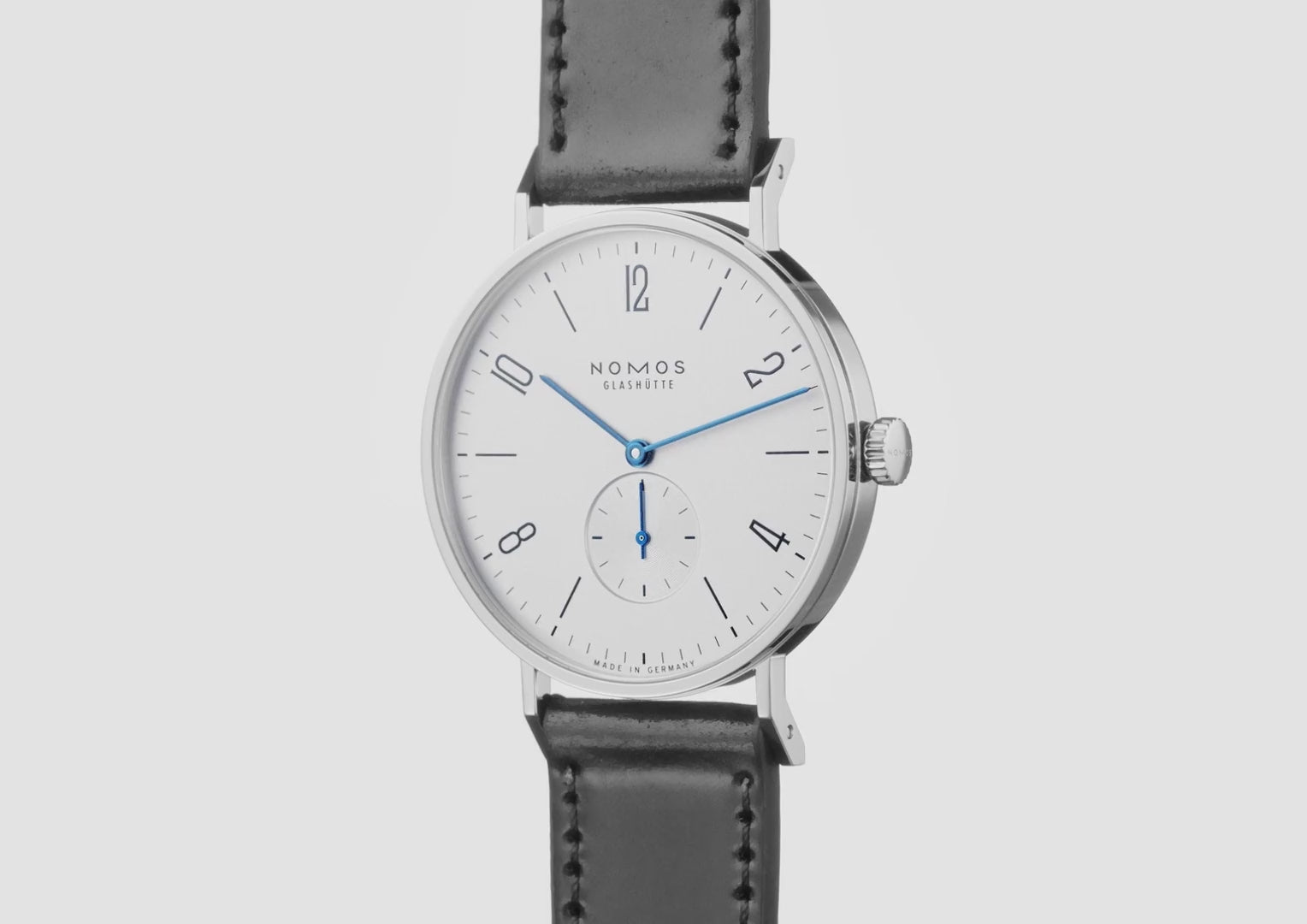 The NOMOS Glashütte Tangente 38mm pairs classic Bauhaus design with refined German craftsmanship. Featuring a crisp white dial with tempered blue hands and a slim stainless steel case, this model houses the manually wound DUW 4001 caliber visible through the sapphire crystal case back. Elegant, balanced, and timeless, it’s the perfect size for those seeking a slightly larger version of the NOMOS icon.