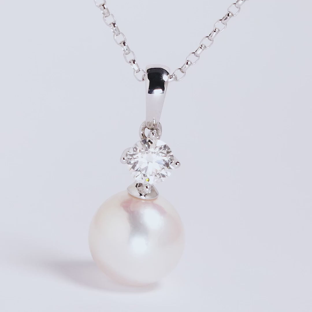 Pearl Drop Pendant with Diamond Accent in White Gold