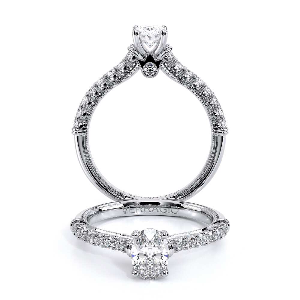 Renaissance-955OV1.7 is a timeless engagement ring created for your perfect oval center stone. The diamond band is set to maximize sparkle and brilliance. With elegant and refined profile details this design gives vintage flair.