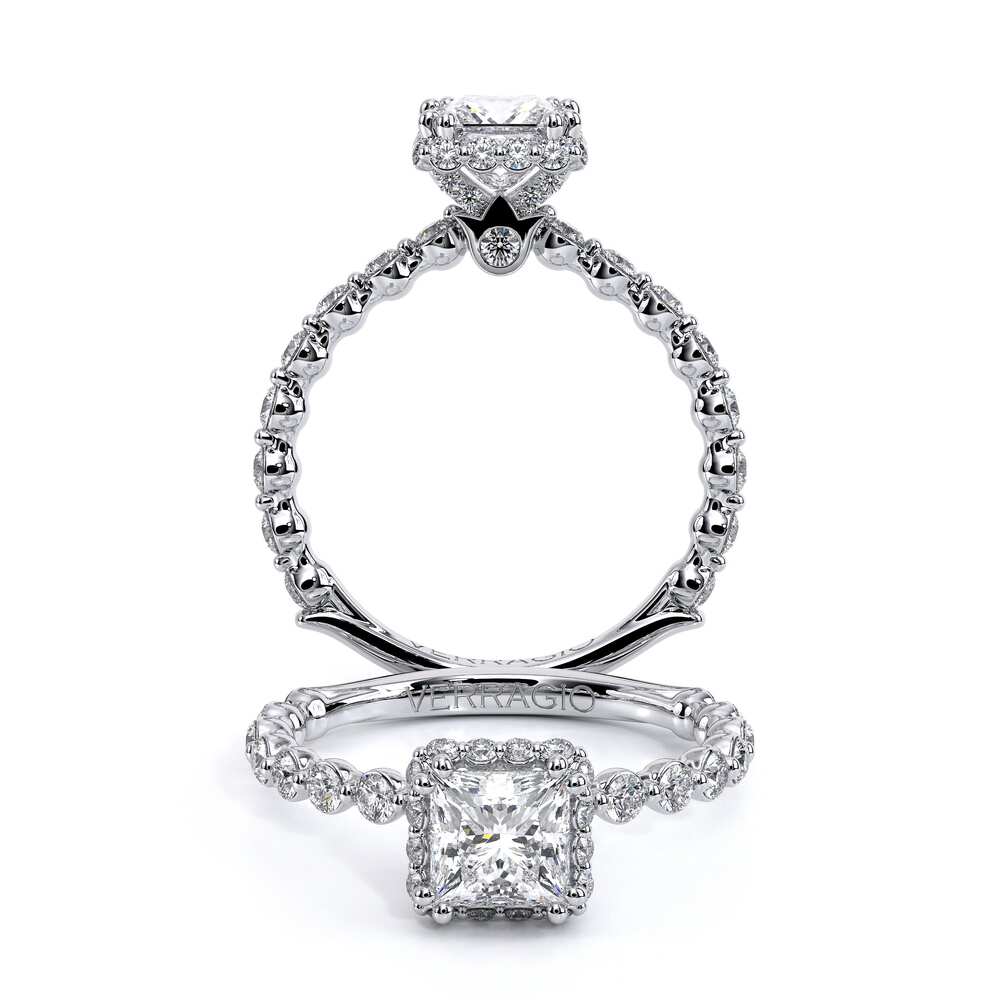 Renaissance-984-HP2.0 accentuates your choice of center stone with our elegant Stardust halo. Brilliant round diamonds extending three quarters give this unique halo engagement ring extra sparkle.
