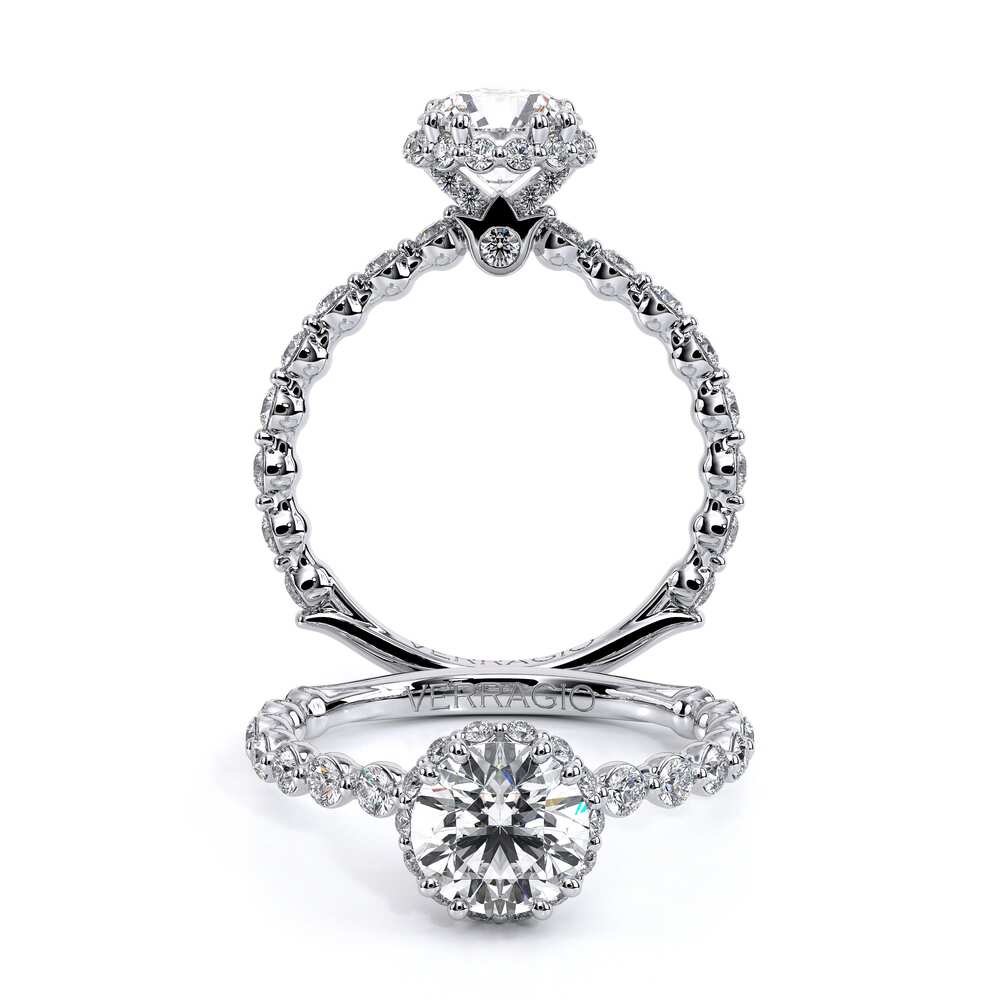 Renaissance-984-HR2.0 accentuates your choice of center stone with our elegant Stardust halo. Brilliant round diamonds extending three quarters give this unique halo engagement ring extra sparkle.