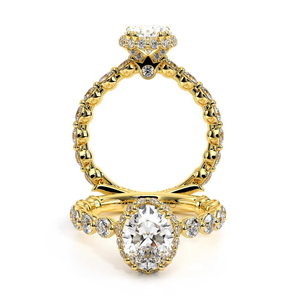 Renaissance-984-HOV2.5 accentuates your choice of center stone with our elegant Stardust halo. Brilliant round diamonds extending three quarters give this unique halo engagement ring extra sparkle.