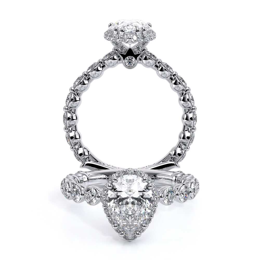 Renaissance-984-HPS2.5 accentuates your choice of center stone with our elegant Stardust halo. Brilliant round diamonds extending three quarters give this unique halo engagement ring extra sparkle.