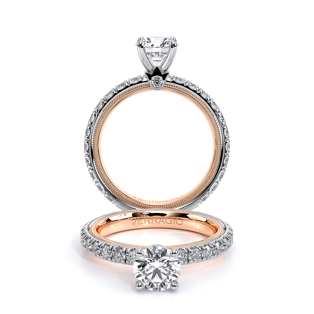 A flawless and refined look on a classic silhouette- TR210-R4 is forged under extreme pressure and pushes the limits of craftsmanship. This ring features our hand sculpted Signature Verragio beading and impeccable diamond setting on the band to perfectly highlight your choice of center stone.