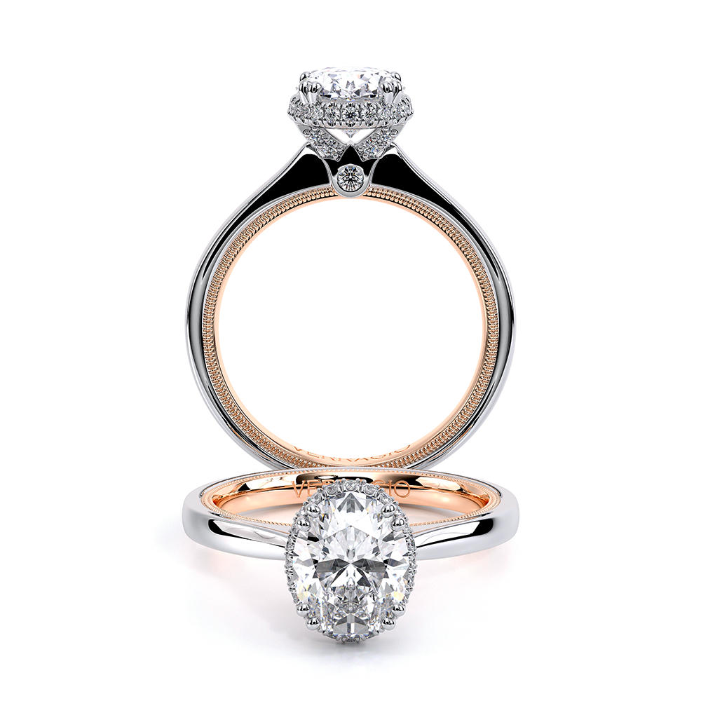 TR211-XOV features our Stardust Halo and is set on an elegant tapered solid band while the Verragio Crest is adorned with the diamond stems to perfectly highlight your choice of center stone.
