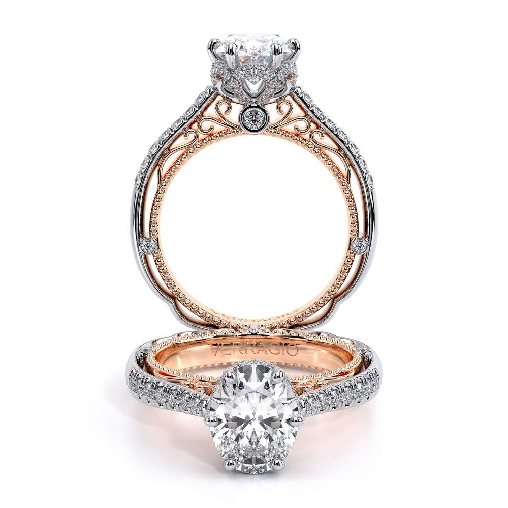 VENETIAN-5052OV engagement ring from the Venetian Collection features an Oval floral tiara on a delicate straight shank with graduating round brilliant diamonds. Choose a lace shank for a more vintage look or opt for a classic shank to keep it simple. This beauty continues to stay as one of our most loved Verragio styles.