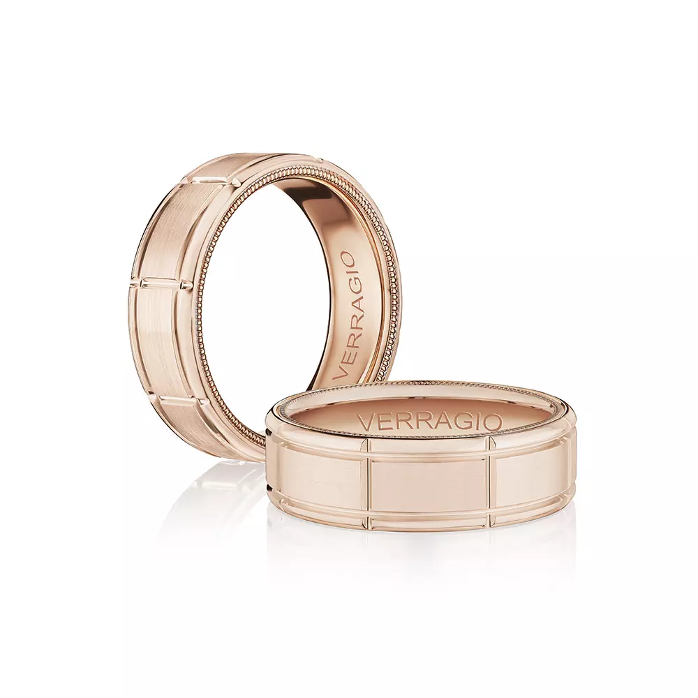 VW-7011 is our stylish 7MM matte finish men's band. Sculpted along the interior is Verragio's signature rose gold beading designed to compliment your bridal set.