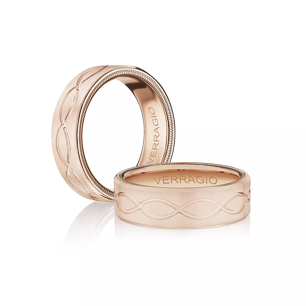 VW-7013 is a classy matte finished 7MM men's band adorned with Verragio's timeless signature beading in rose. Featured with an exquisite infinity design on the band to symbolize your eternal love.