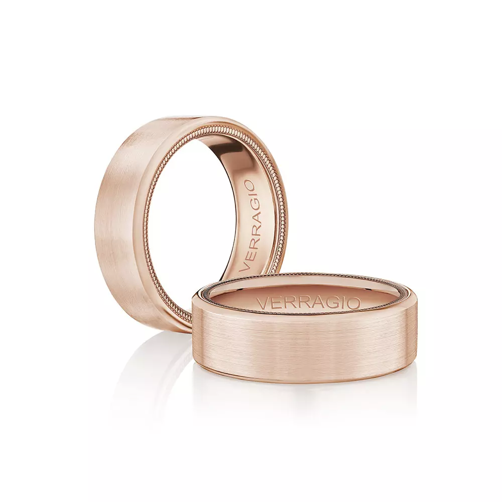 VW-7014 is our classic 7MM men's band accentuated with high polished edges and a matte finish. Adorned with Verragio's stylish signature beading in rose gold.