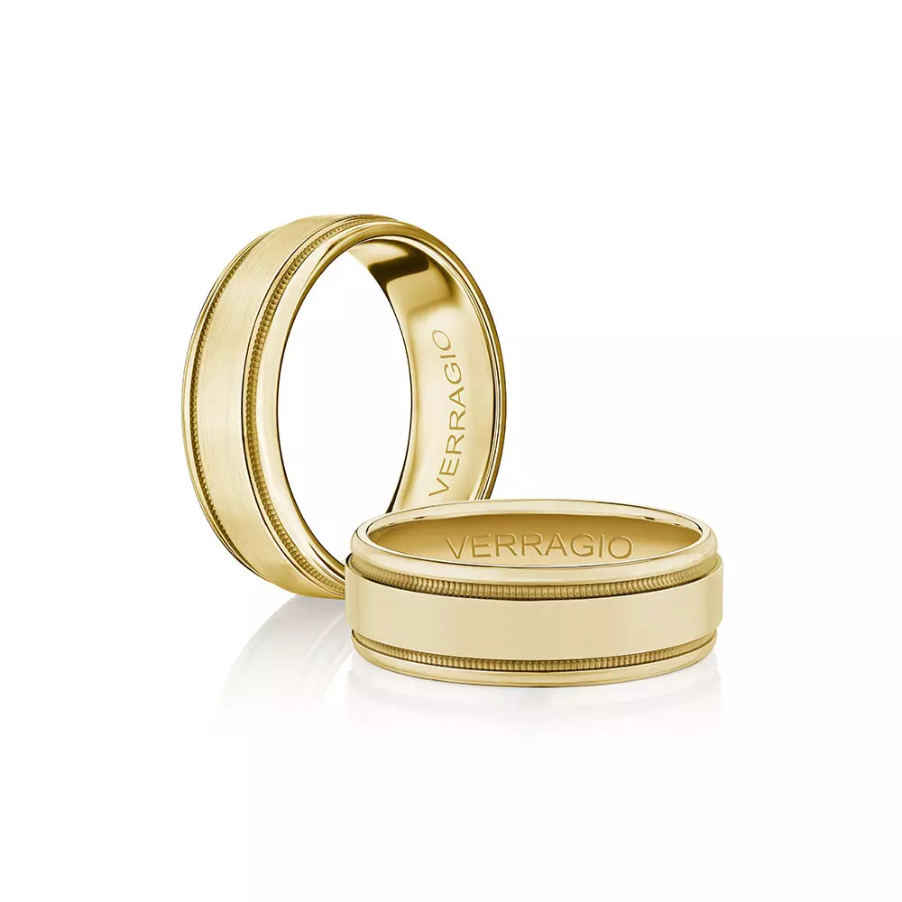 One of our latest wedding band designs in a 7mm width with a matte finish and polished edges made complete with signature Verragio bead-work giving it a tailored feel. Whether you prefer modern or traditional styles these wedding bands are precisely crafted with artisanal details to stand out.