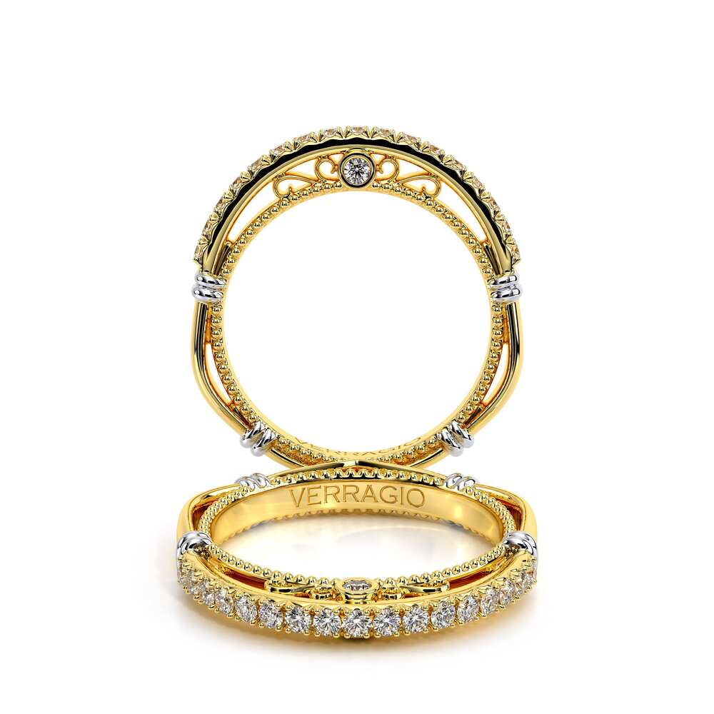 PARISIAN-120W is our classic straight wedding band that is decorated with Parisian Lace Verragio signature beading and our Timeless wraps that will perfectly compliment any Parisian collection engagement ring. **Note: +$400 for Lace Beading or Both in a different color