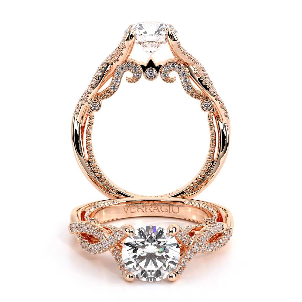 INSIGNIA-7060 Round engagement ring. Featuring round brilliant-cut pave set diamonds on a twisted band. Distinctively paired with Verragio's handcrafted signature beading.