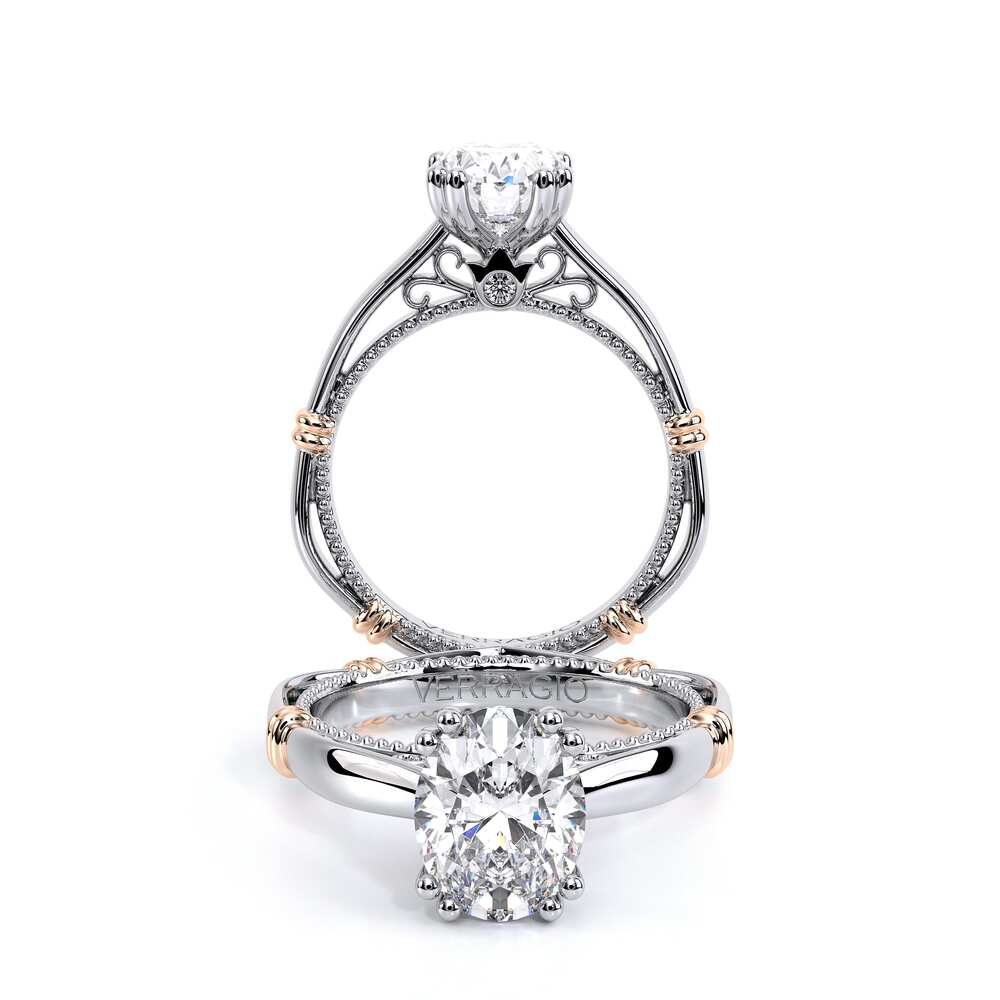 PARISIAN-120OV is a solitaire setting that is decorated with the handcrafted Parisian lace and Verragio Signature beading that adds a modern twist to a classic design while enhancing the oval center diamond.