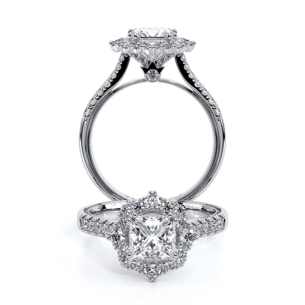 Renaissance-982HP pave engagement ring radiates elegant styling with our starburst halo. Diamond prongs add sparkle to the profile in this unique handcrafted engagement ring.