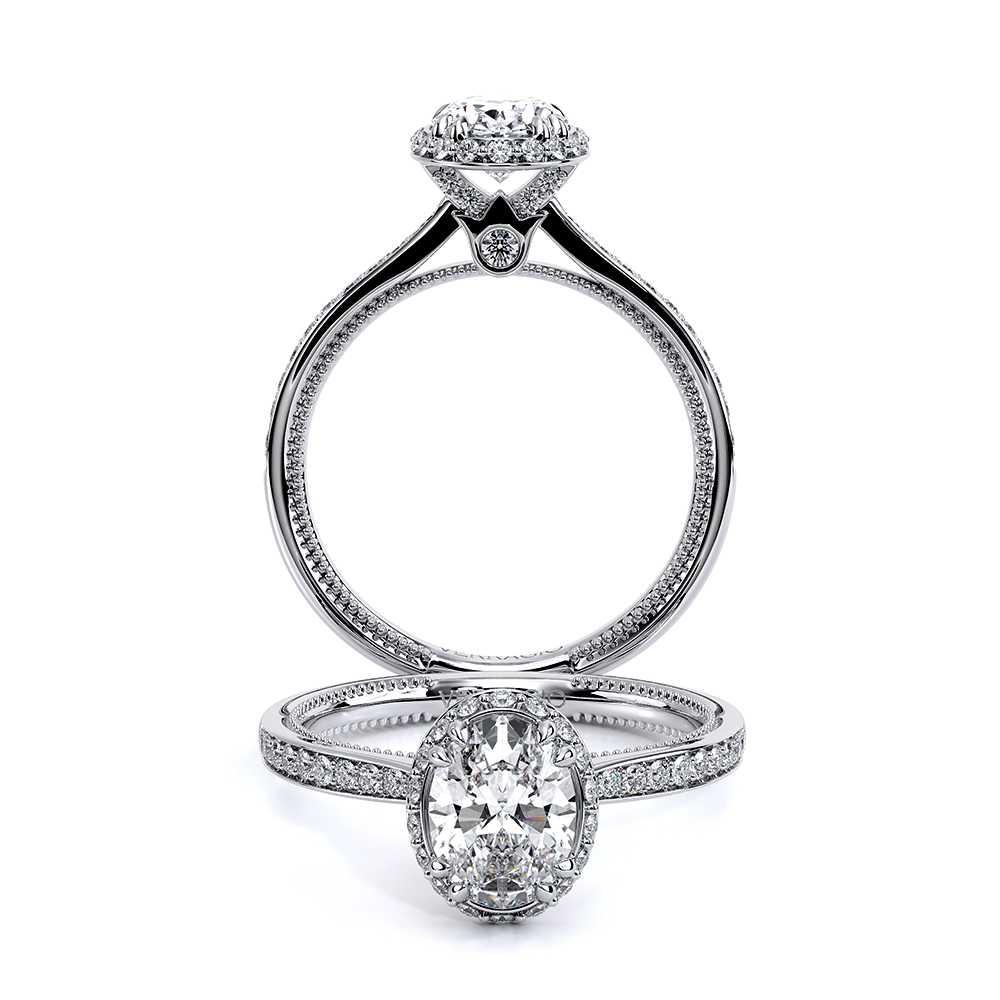 Renaissance-SLD302-XOV is a classic engagement ring for your perfect Oval shaped stone enhanced by Verragio's shared prong Stardust halo. This setting also features an elegant round brilliant cut diamond band and refined profile complete with Verragio's signature beading and crest.
