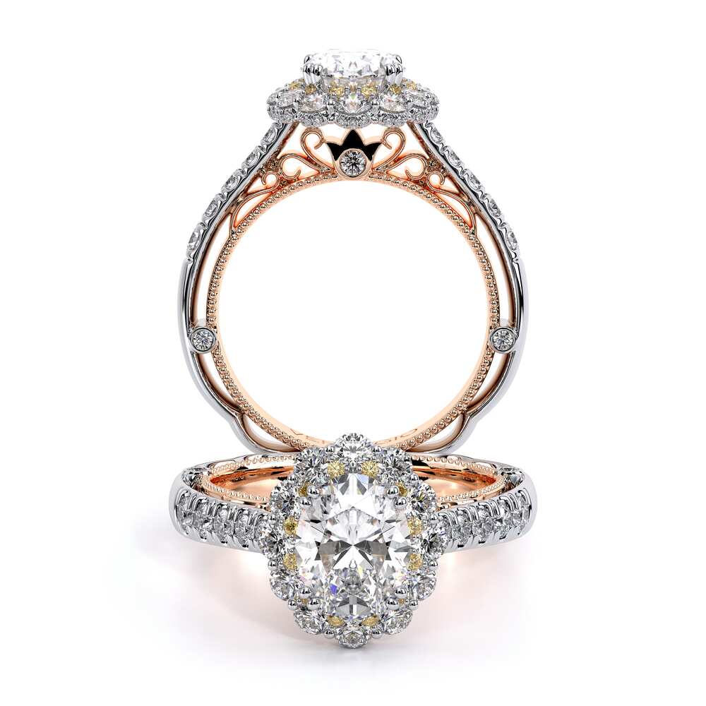 VENETIAN-5080OV engagement ring features an Enchanted diamond Halo with a three layer Oval halo design adding on to the sparkle of the center Oval diamond. This beauty features graduating round brilliant diamonds on the shank all infused together with our handcrafted lace and signature beading on the inside. The artistry and the craftsmanship of this ring will effortlessly make you stand out and shine.