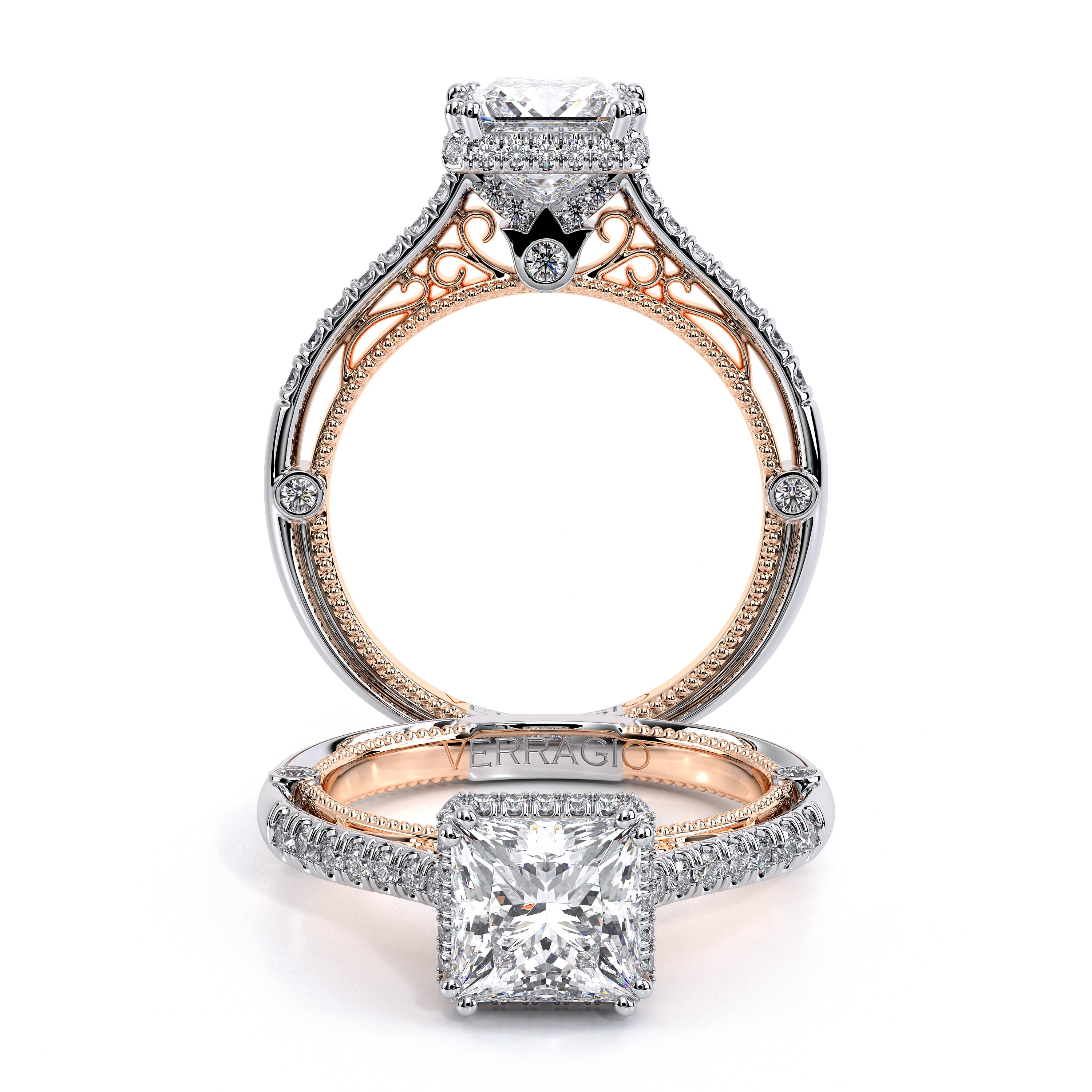 VENETIAN-5081P engagement ring features our Stardust Halo made for a princess center seamlessly seated on top of four diamond encrusted prongs. The delicate shank is adorned with graduating round brilliant diamonds. This gorgeous ring stands timeless as is. Make it yours today.