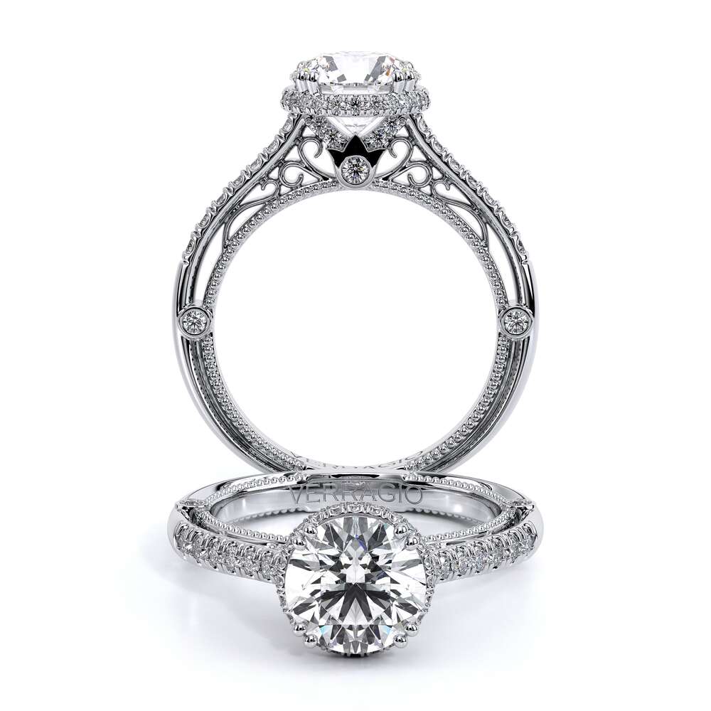 VENETIAN-5081R engagement ring features our Stardust Halo made for an round center seamlessly seated on top of four diamond encrusted prongs. The delicate shank is adorned with graduating round brilliant diamonds. This gorgeous ring stands timeless as is. Make it yours today.