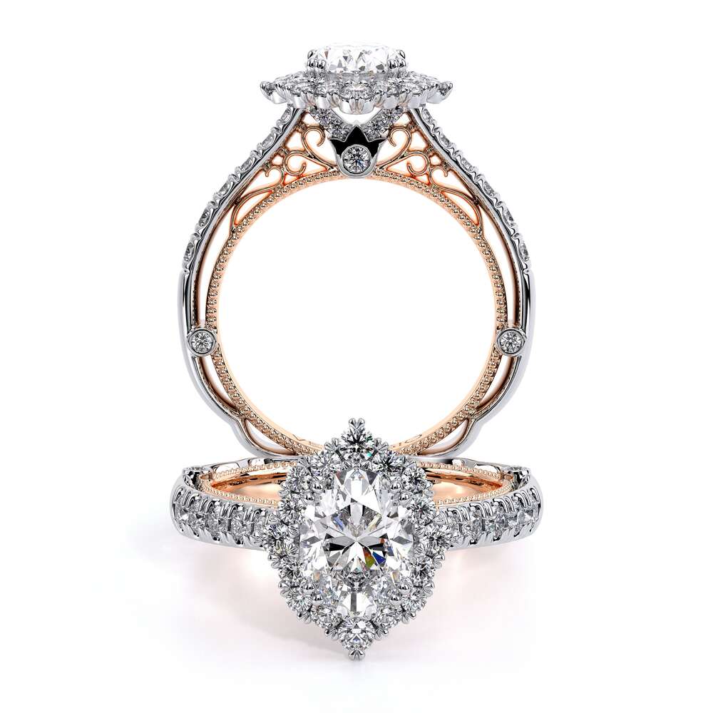 VENETIAN-5083OV engagement ring features our gorgeous Starburst Halo made for a Oval center stone. A straight shank adorned with round brilliant diamonds completes this beauty. Continue the vintage look with the lace shank on the bottom or keep it simple with our classic shank.