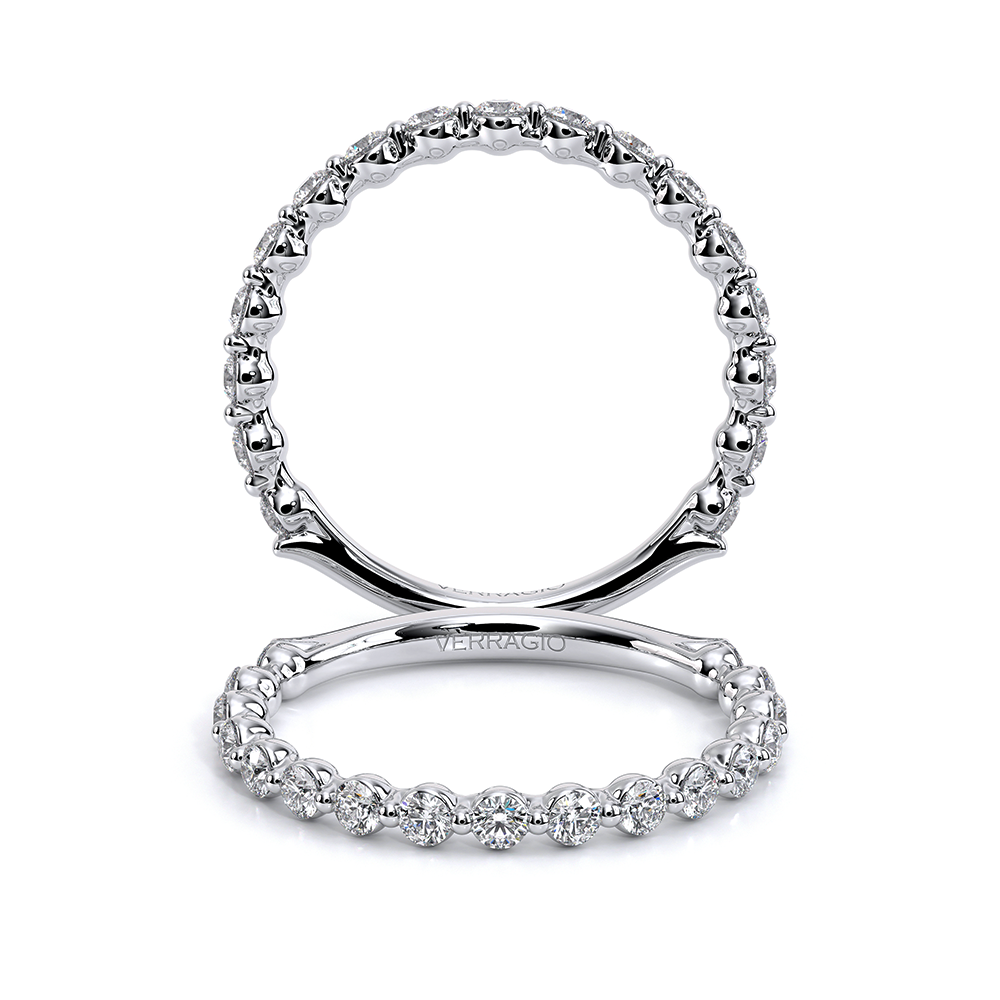 The Renaissance-989W band is made for bedazzling style with excellent comfort and durability. Crafted especially to ensure the diamonds are cradled securely, the elegant shared-prong cup setting is sleek and stunning. It seamlessly complements the V-989 engagement series.